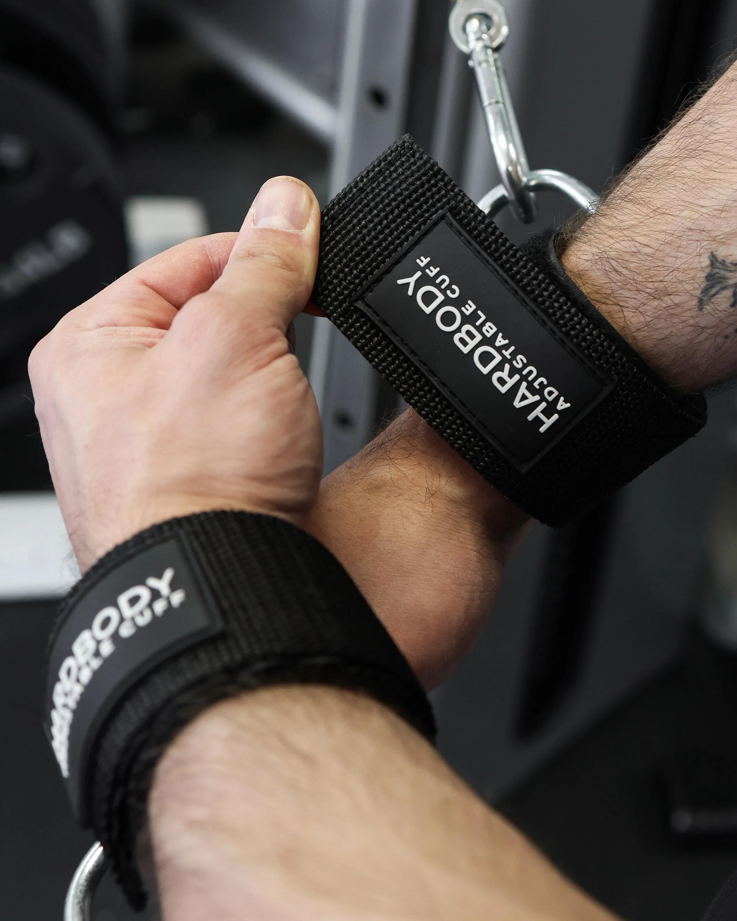 The Hardbody Adjustable Cuff is made with heavy duty nylon & high quality neoprene, making it the most comfortable cuff on the market. This cuff adjust to fit any size effortlessly. Attach them around your ankles, biceps, or wrists, and connect the metal D-rings to any cable machine.